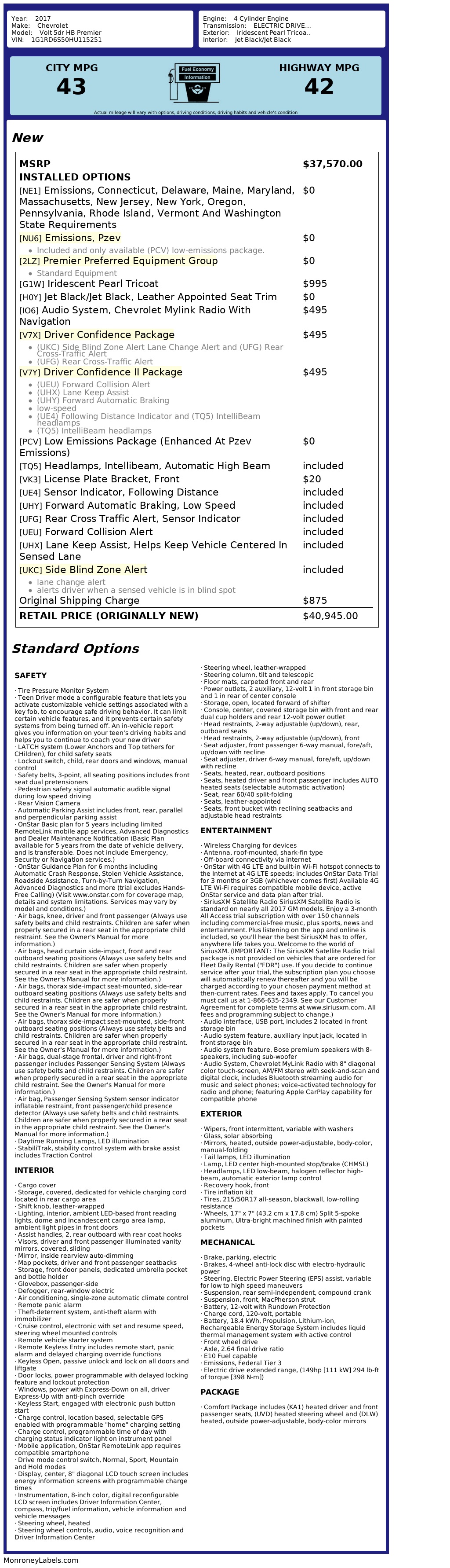 2017 Chevrolet Volt 5dr HB Premier
